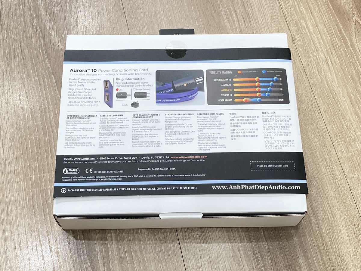 Dây nguồn lọc nhiễu Aurora là bản nâng cấp từ mẫu Stratus, được bổ sung lớp bạc trên các lõi dẫn OFC nhằm mang lại màu âm sống động hơn và độ chính xác trong hiệu ứng không gian 3D tốt hơn. Nhờ vào bước đột phá của lớp chống nhiễu/cách điện COMPOSILEX 5, dây nguồn cao cấp này có thể sánh ngang với nhiều dây nguồn audiophile đắt tiền khác.