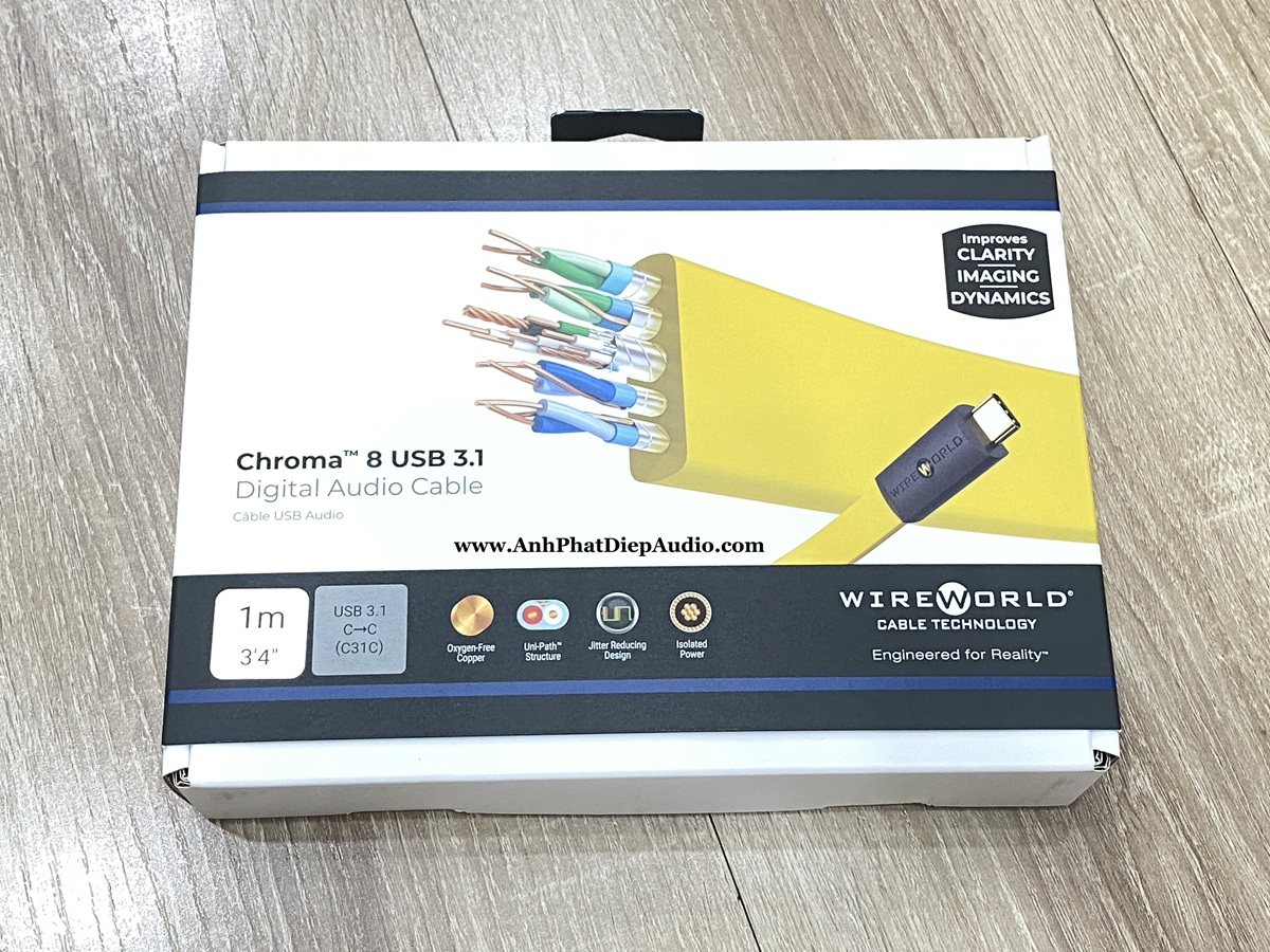 Chroma 8 USB mang đến sự thỏa mãn về chất lượng âm thanh có được từ thiết kế Uni-Path với mức giá thành giảm, mức giá của Chroma 8 USB chỉ cao hơn chút so với dây cáp tiêu chuẩn. Giống như tất cả dây cáp USB của Wireworld, sợi dẫn điện hấp thụ noise làm cải tiến độ sạch của âm thanh. Vượt trội với USB chính thức về thông số kỹ thuật truyền tốc độ cao.