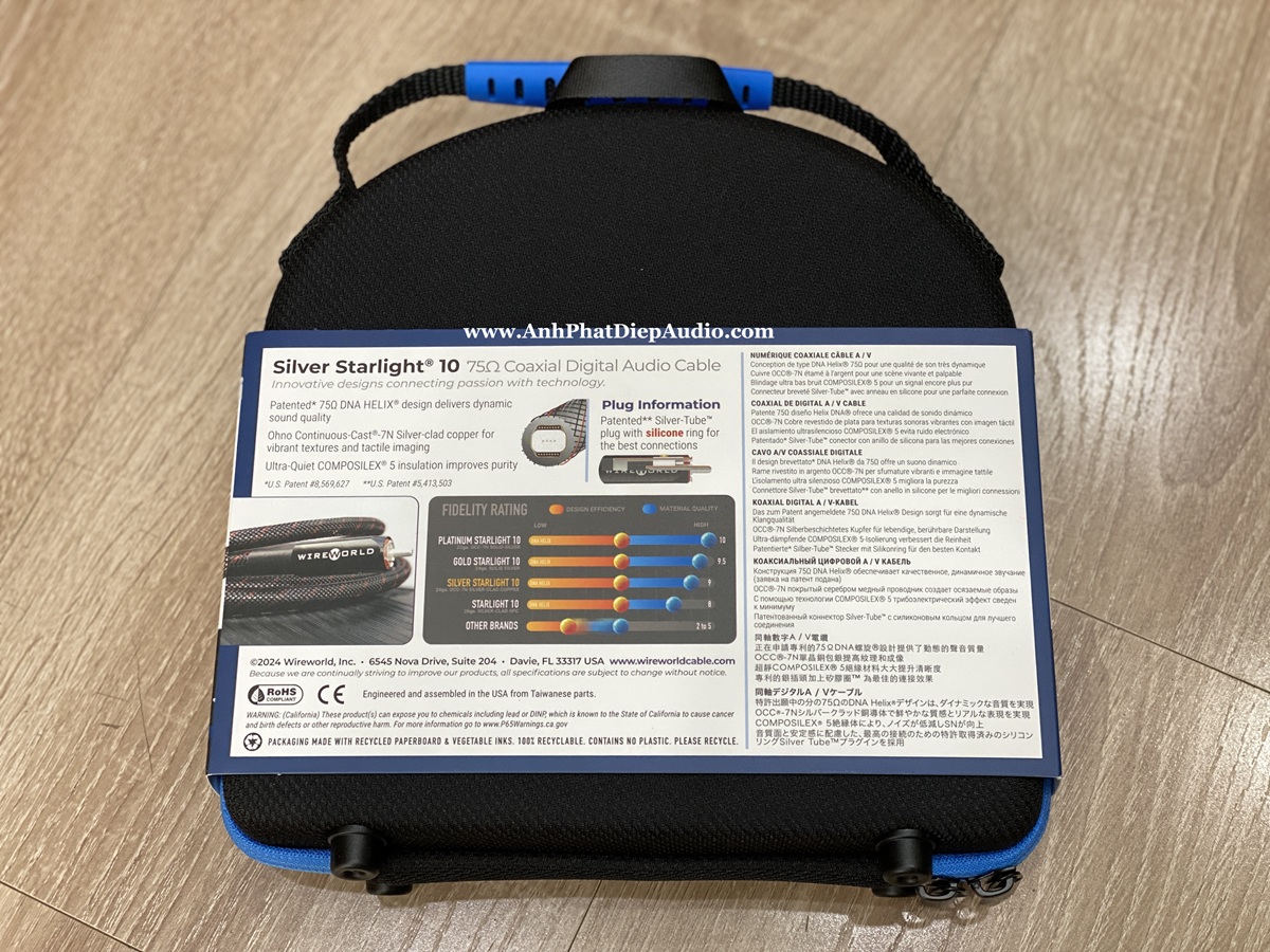 Bằng cách kết hợp thiết kế của dây Gold Starlight 10 thuộc hàng đẳng cấp thế giới với dây dẫn bằng đồng OCC-7N mạ bạc để giảm giá thành, Silver Starlight 10 làm cho hiệu suất âm thanh digital có chất lượng tham chiếu với giá thành trở nên hợp lý hơn bao giờ hết. Sự nâng cấp chất chống nhiễu thế hệ mới nhất của hãng COMPOSILEX 5 cho nền siêu tĩnh, đây là dây cáp âm thanh digital coaxial 75-ohm thế hệ thứ 10 tạo ra những cải tiến đáng kể về độ rõ nét, tập trung âm hình 3-D và độ động tương phản.
