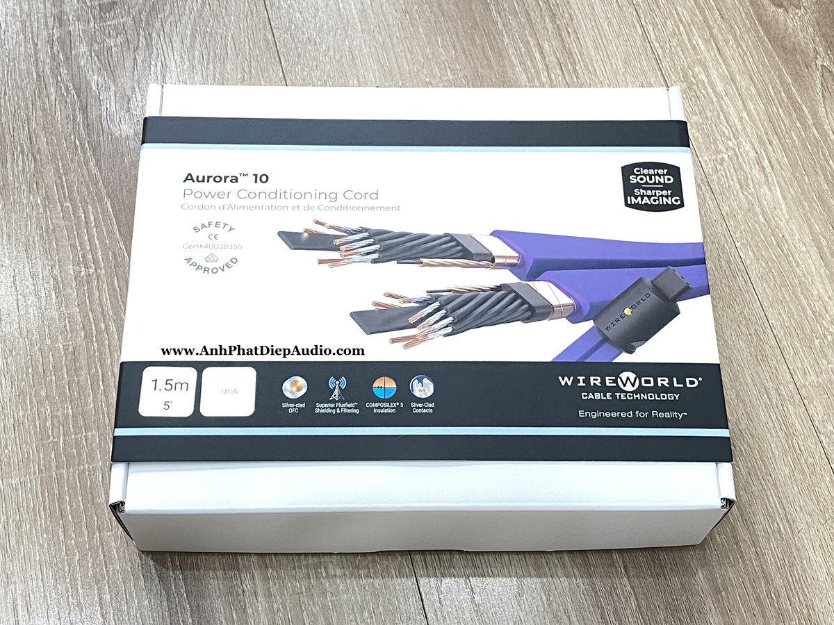 Dây nguồn lọc nhiễu Aurora là bản nâng cấp từ mẫu Stratus, được bổ sung lớp bạc trên các lõi dẫn OFC nhằm mang lại màu âm sống động hơn và độ chính xác trong hiệu ứng không gian 3D tốt hơn. Nhờ vào bước đột phá của lớp chống nhiễu/cách điện COMPOSILEX 5, dây nguồn cao cấp này có thể sánh ngang với nhiều dây nguồn audiophile đắt tiền khác.