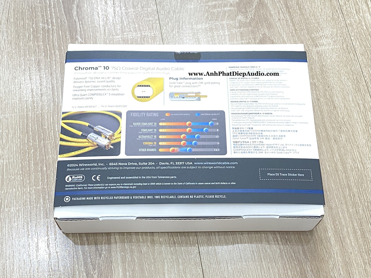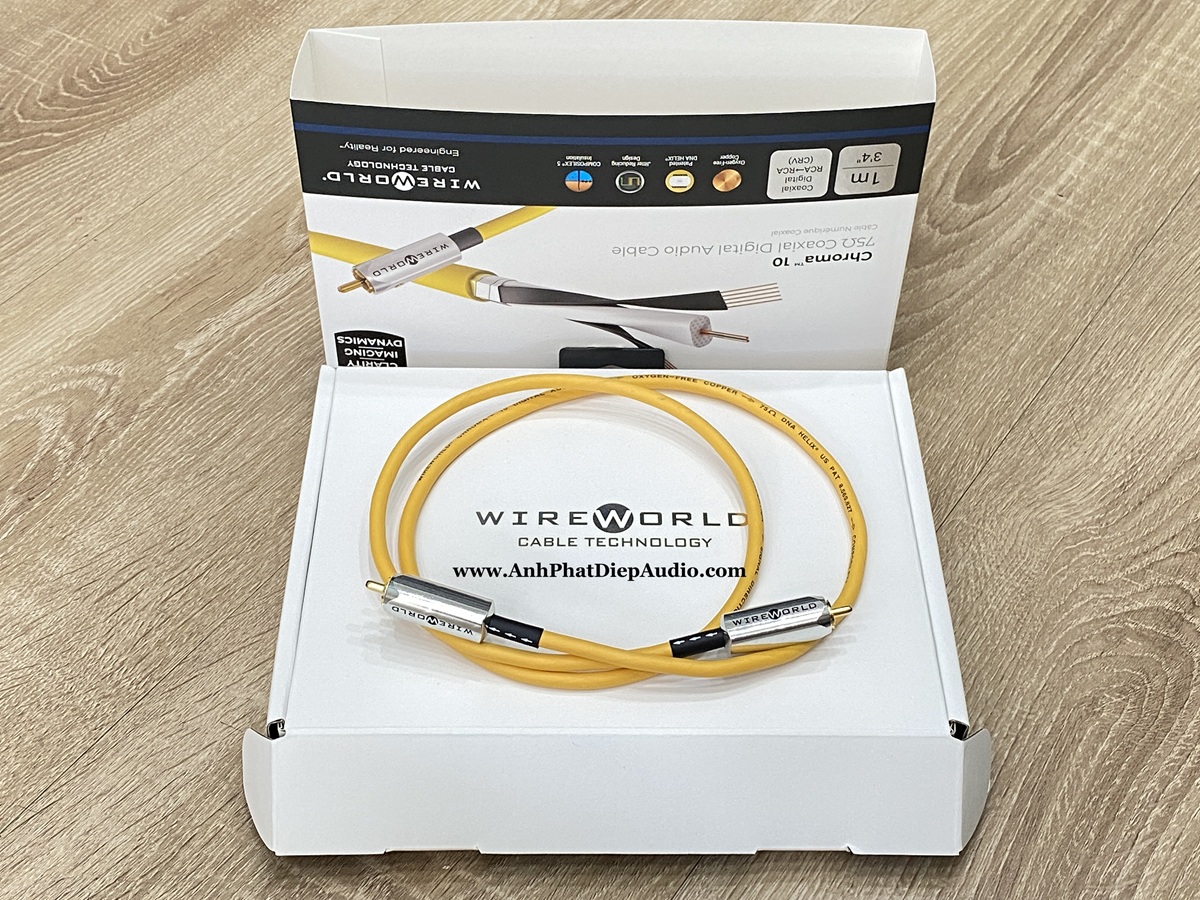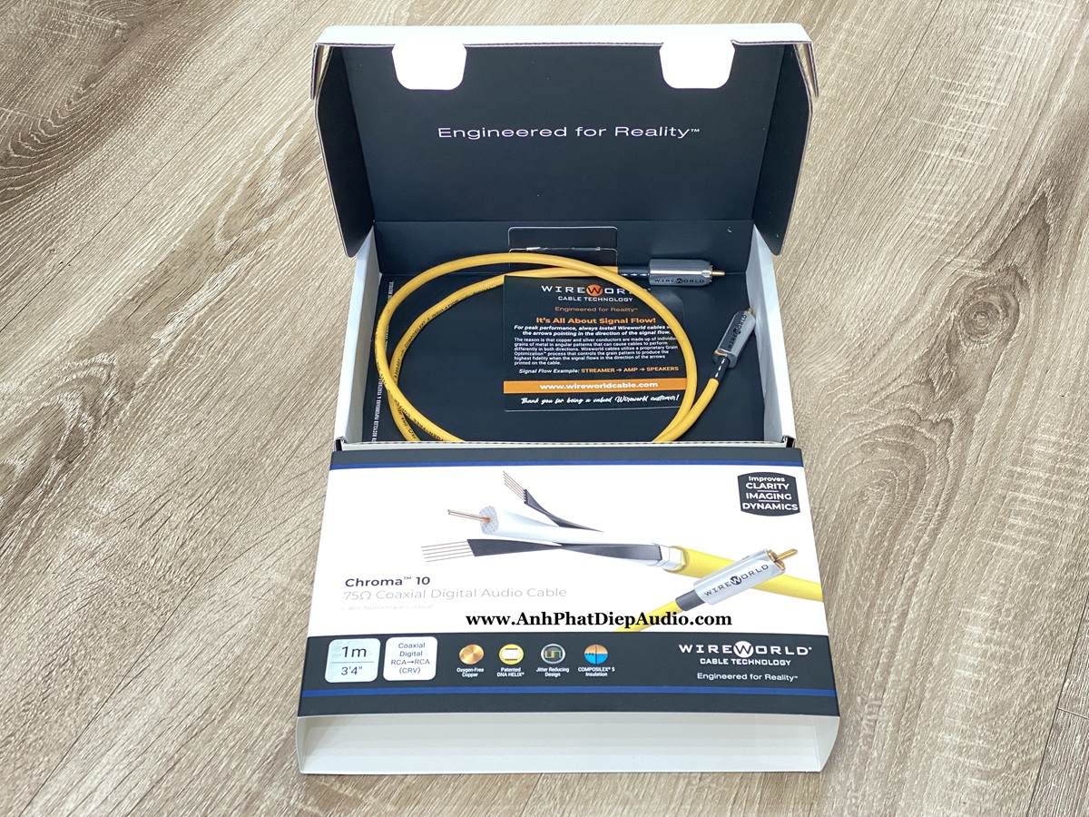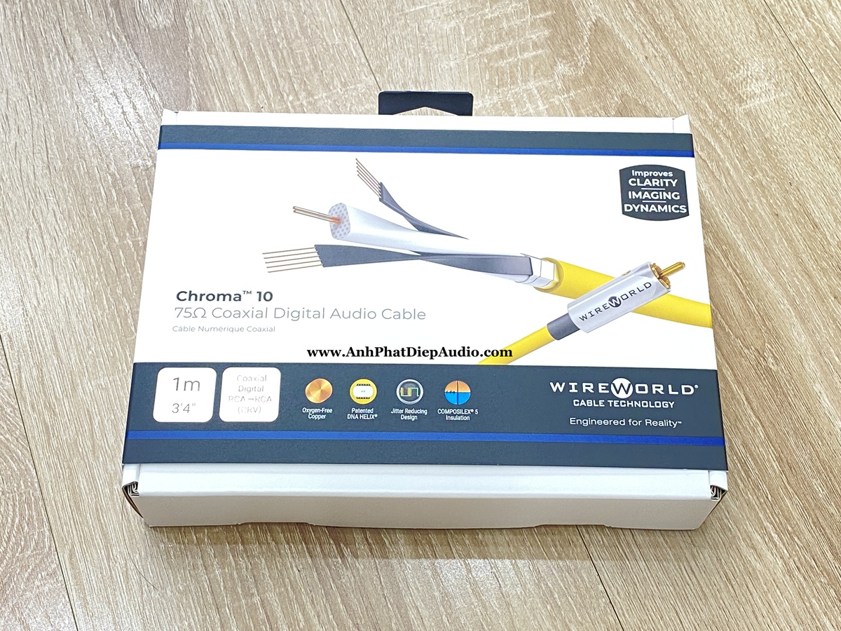 Chroma 10 Coaxial với chất lượng vượt trội của jack cắm Gold-Tube ™ RCA độc quyền của Wireworld và dây dẫn đồng trục bằng đồng OFC trong thiết kế DNA Helix được cấp bằng sáng chế, cho phép Chroma 10 vượt trội hơn cáp đồng trục thông thường được bán với giá cao hơn nhiều.