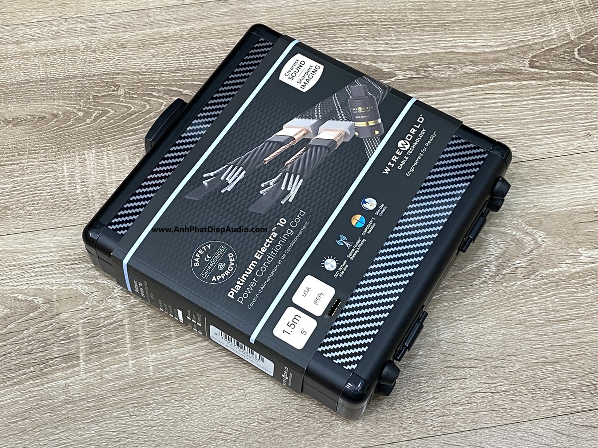 Platinum Electra 10 nâng tầm nghệ thuật tái tạo âm nhạc bằng cách mang đến chất lượng âm thanh gần như đạt đến sự thuần khiết tuyệt đối của nguồn điện tham chiếu bằng pin. Với những vật liệu cao cấp nhất trong thiết kế Fluxfield độc đáo, nó tạo ra âm sắc phong phú nhất, âm hình sống động nhất và sự biểu đạt độ động mạnh mẽ nhất so với bất kỳ dây nguồn audiophile nào. Cả dây dẫn lẫn chân tiếp xúc của phích cắm đều được làm từ bạc OCC-7N – kim loại dẫn điện tốt nhất thế giới, và lớp cách điện COMPOSILEX 5 là loại nền truyền dẫn tĩnh nhất hiện có. Thiết kế dẹt, linh hoạt giúp dây dễ uốn cong và cuộn lại, khắc phục sự cứng nhắc thường thấy ở các dây nguồn hi-end. Vì dây nguồn lọc nhiễu của Wireworld hoạt động như một bộ lọc, nên chiều dài dây càng lớn thì hiệu năng càng được cải thiện.